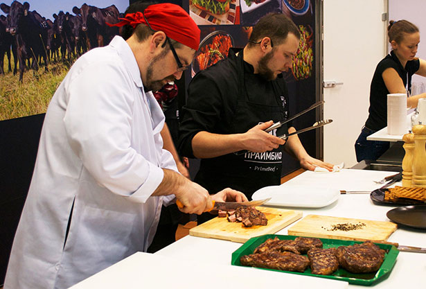 В рамках данной выставки на нашем стенде были проведены интересные мастер-классы по разделке мяса бычков породы черный Ангуса, по приготовлению вкуснейших блюд, как из премиальных отрубов, так и из альтернативных. Было бесконечное количество дегустаций, все блюда отличались потрясающим вкусом, что не могло не радовать всех наших существующих и будущих партнеров.