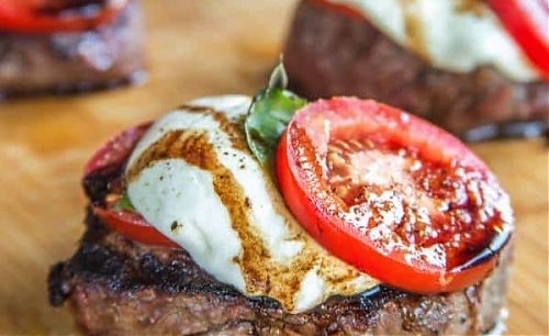 Можно подержать стейки на гриле чуть дольше. После того, как вы обжарите их по 5 минут с каждой стороны, убавьте жар, положите все ингредиенты сверху на стейк, закройте крышку гриля и обжаривайте еще 3-5 минут или до желаемой степени готовности.