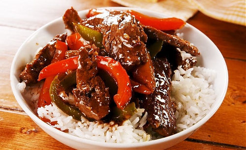 - Положите полоски стейка обратно в сковороду и полейте соусом. Перемешайте и тушите еще несколько минут. Блюдо готово.