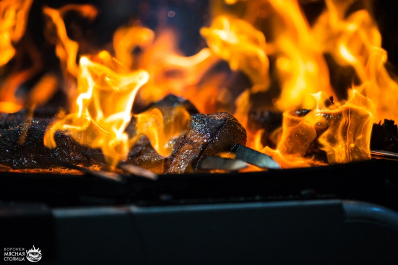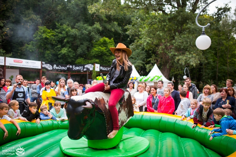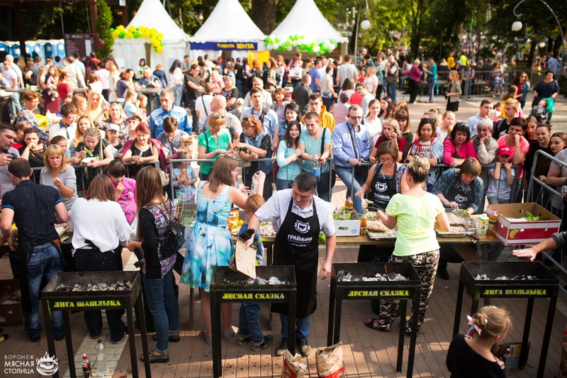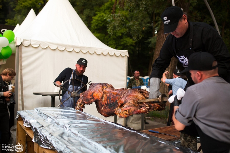 Найти площадку «Мясной столицы» можно было легко — просто идти на звук и запах. Со сцены громогласные ведущие проводили конкурсы для посетителей, рядом непрерывно работал фудкорт ресторана «Мясной культ», по соседству на стойке гипермаркета «Лента» проводилась дегустация продуктов, а весь день 9 сентября на огромном вертеле томился мраморный бычок (к вечеру его раздали по кусочкам всем желающим).