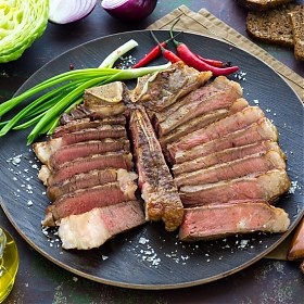 Стейк Портерхаус — это крупный отруб из поясничной части, близкий родственник стейка Ти-Бон (T-Bone). Он так же сочетает в себе мясо тендерлойн (вырезка) и стриплойн (тонкий край). Это очень сытное блюдо, с которым не под силу справиться одному человеку. Стейк Портерхаус рекомендуется готовить в стиле традиционного барбекю — на гриле. Но добиться желаемого результата — вкусного и сочного мяса — можно и дома. Для этого нужно запечь отруб в фольге. Посмотрим, как это сделать правильно.