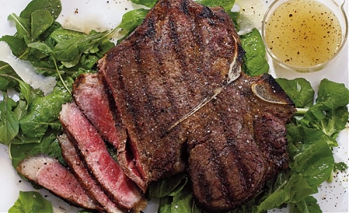 Подавать стейк Портерхаус лучше всего с различными овощами-гриль.